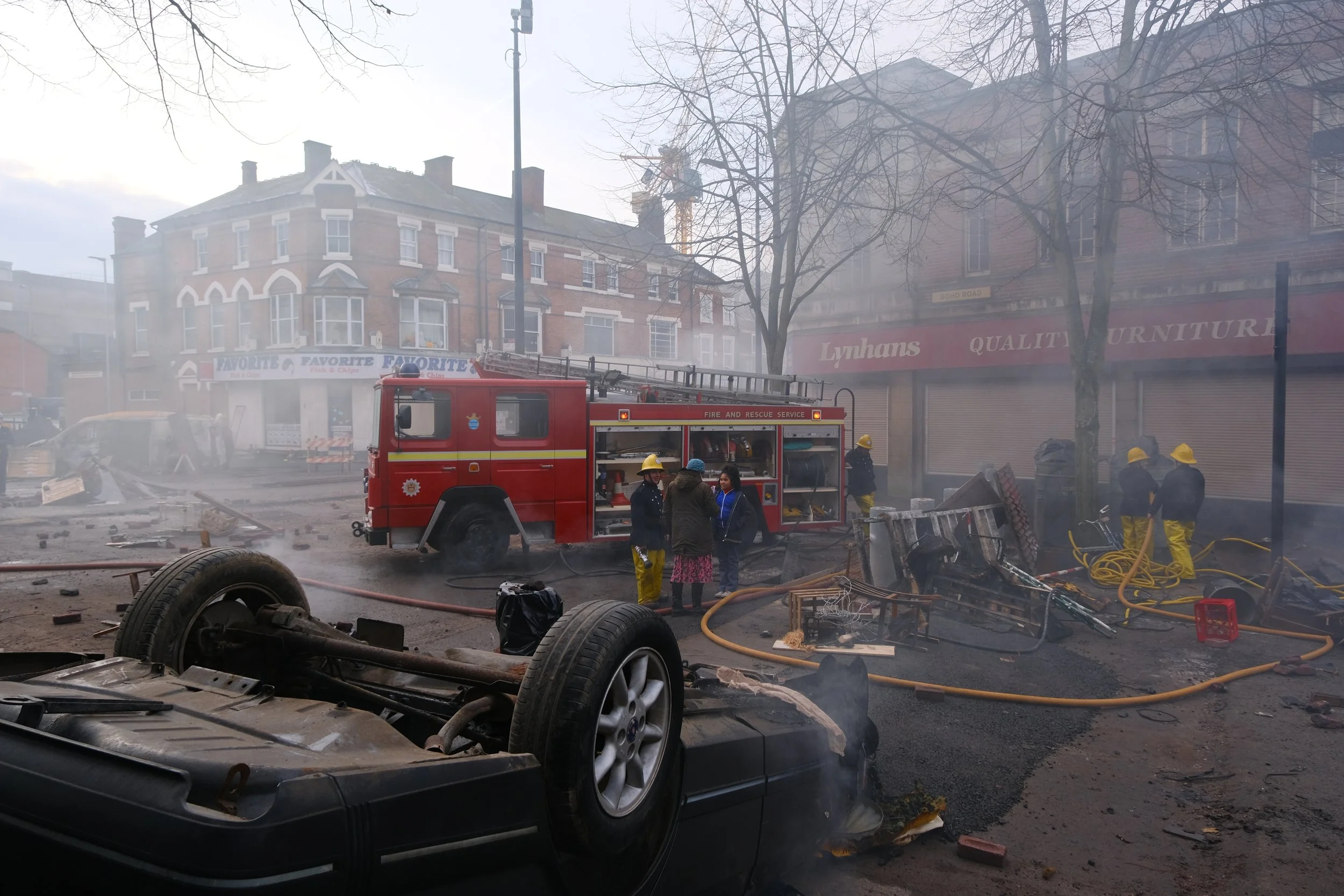This Town - Birmingham Riot Two streets, approximately twenty shop windows with one day to dress. Plus, three burnt out cars, one fire engine, a rather rowdy mob & one extremely well-behaved Alsation. Research View fullsize View fullsize View fullsize View fullsize Art Direction: Chris Agnew